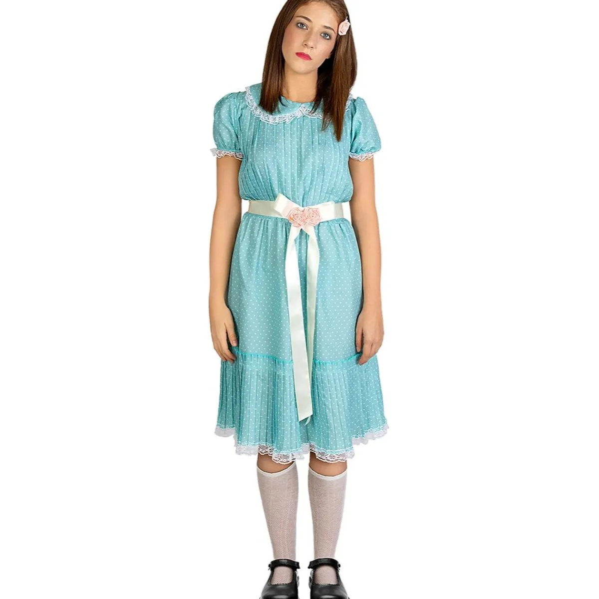 Este disfraz de El Resplandor en talla L es ideal para encarnar a las gemelas más escalofriantes del cine. Con su vestido azul clásico y accesorios, lograrás un look auténtico que no dejará a nadie indiferente.