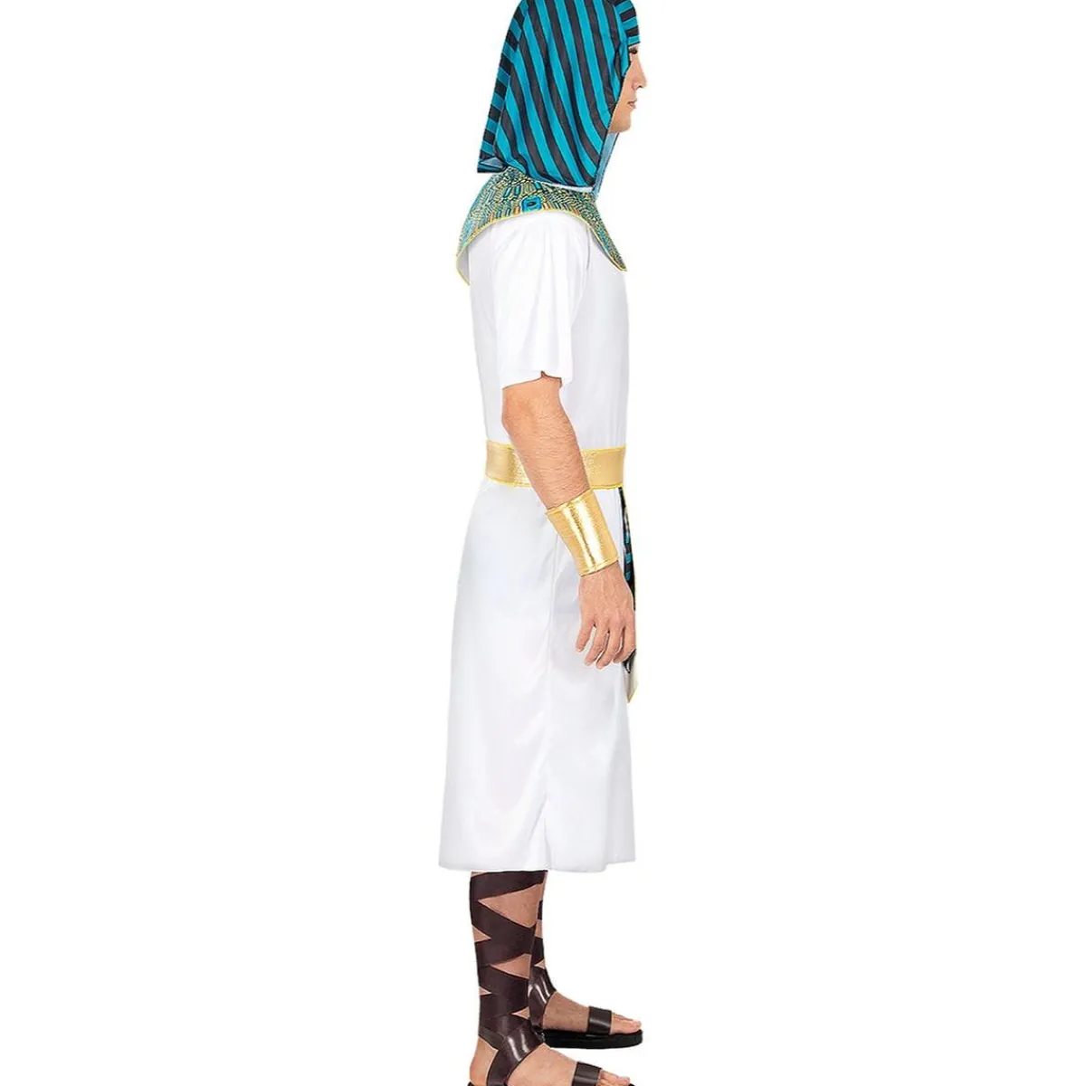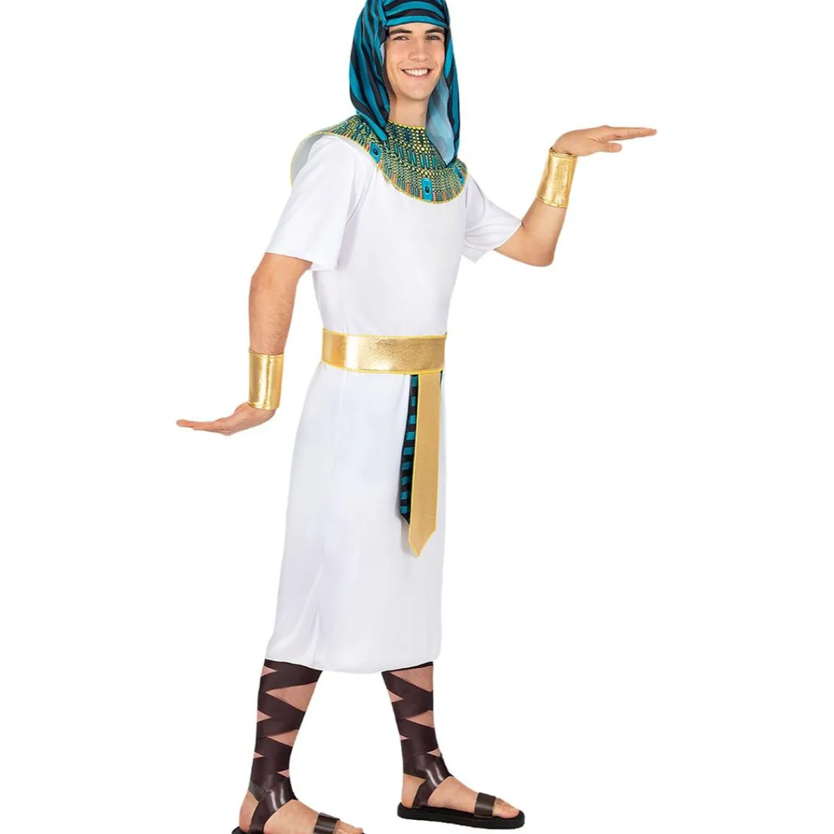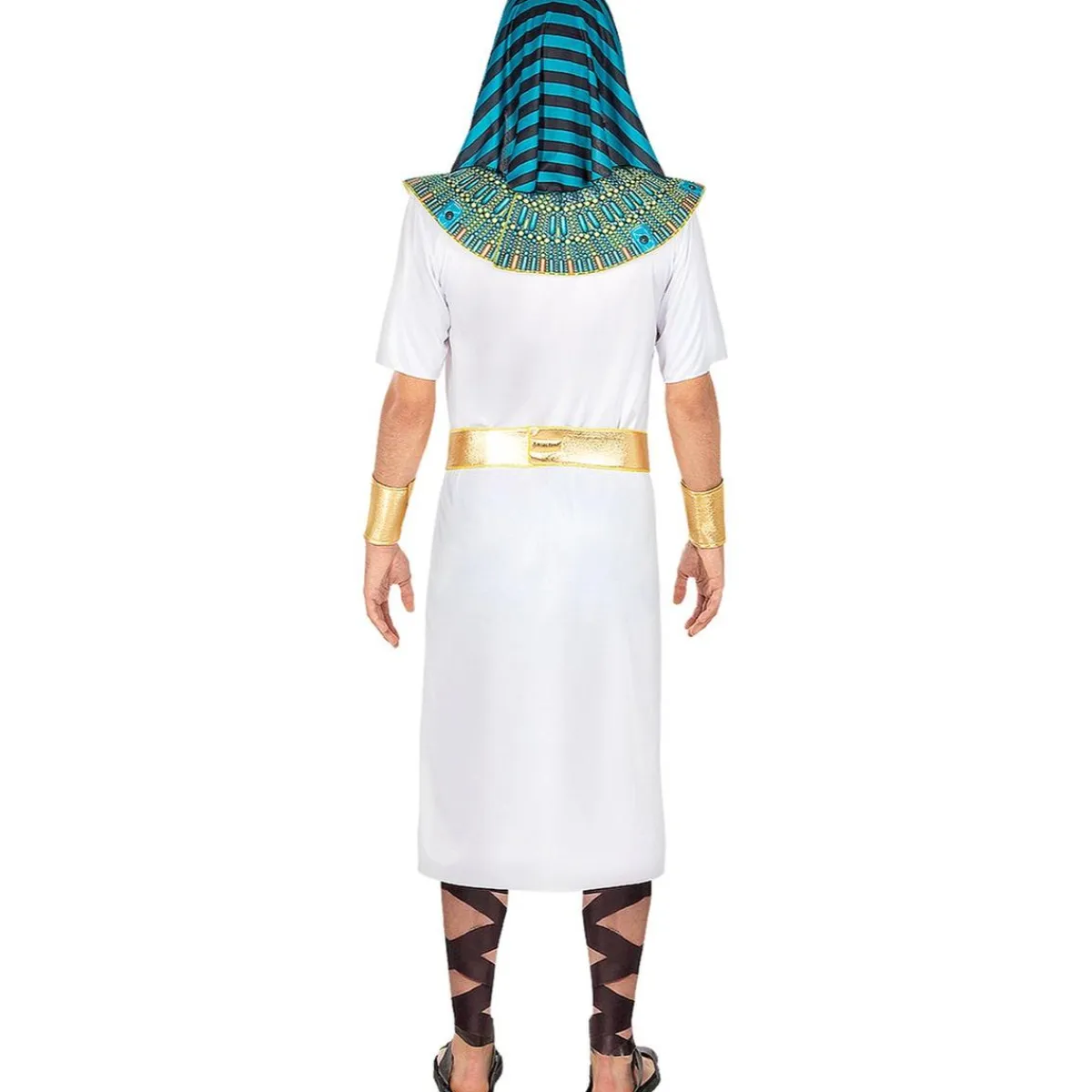 Túnica con estampado jeroglífico y tocado faraónico que emana poder milenario. Ideal para encarnar gobernantes mitológicos con comodidad moderna.