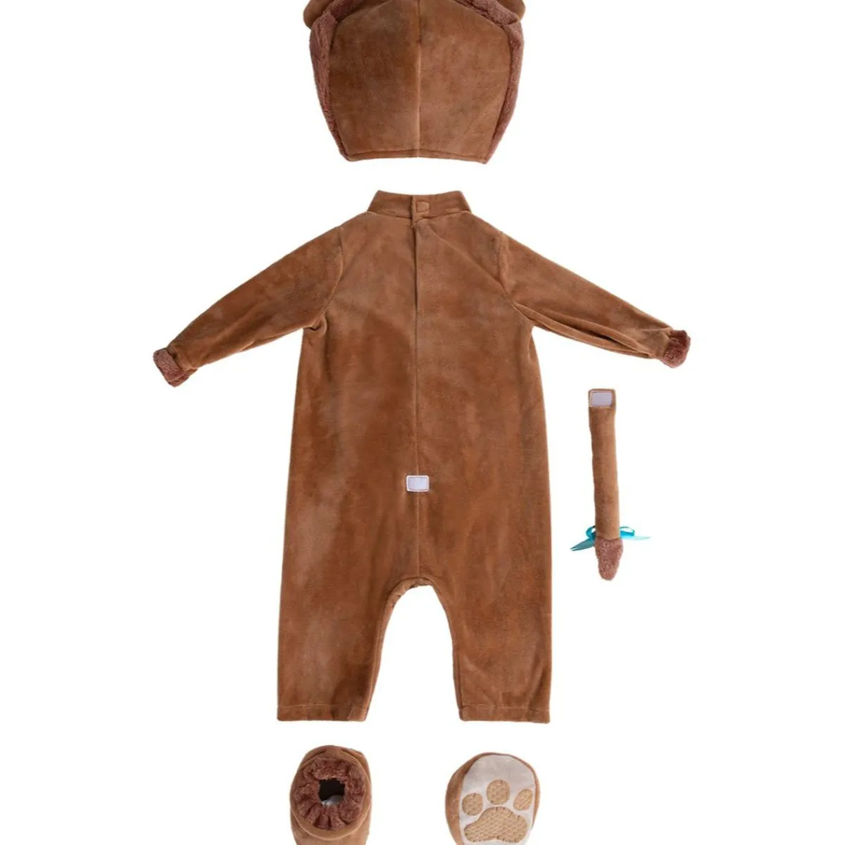 Incluye un mono con corchetes para fácil colocación, gorrito con melena esponjosa, cola y cubrepies a juego.