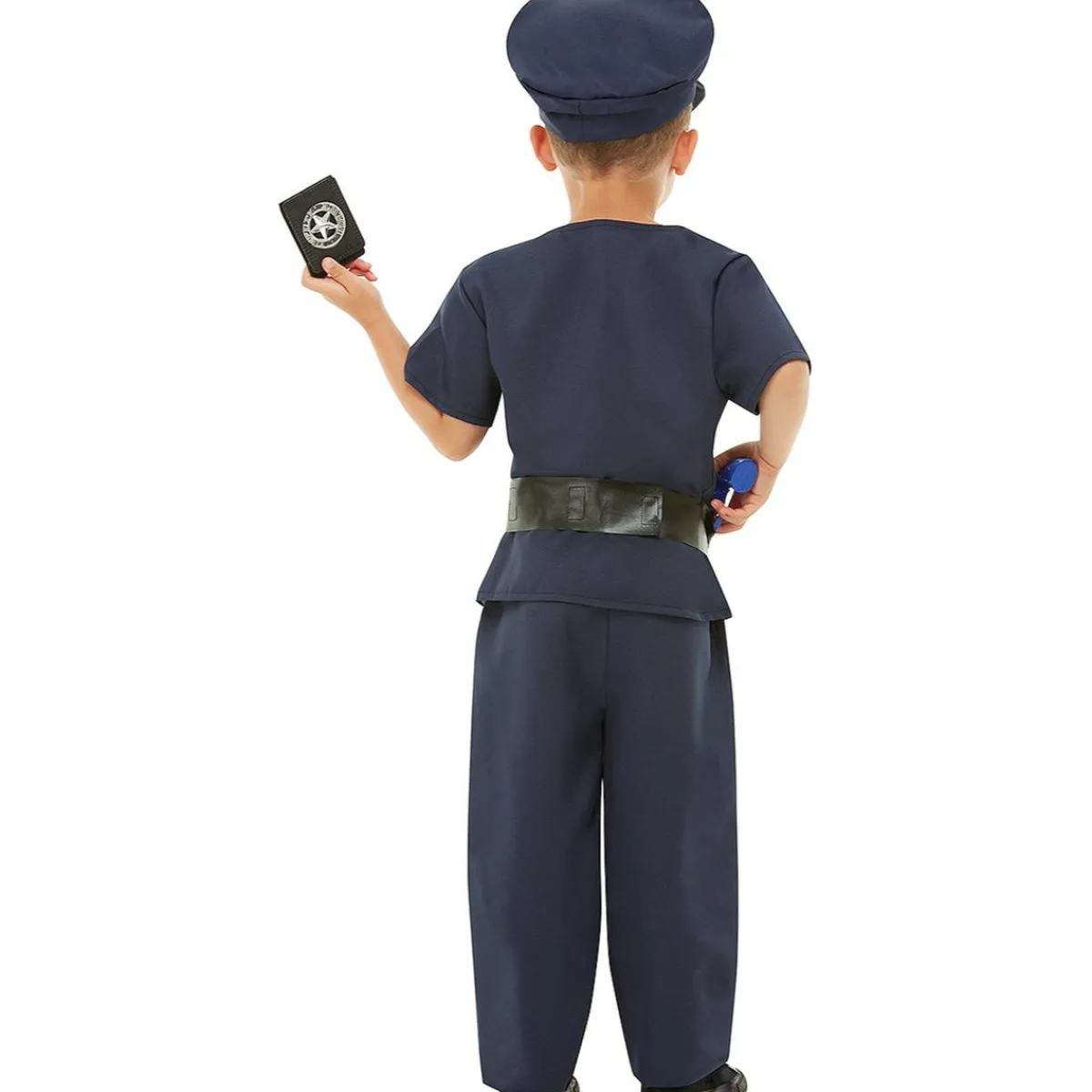 ¡Listos para la acción! Con el Disfraz de policía para niños, que incluye camiseta, pantalón, cinturón y gorra, los pequeños estarán preparados para mantener el orden. Fabricado en 100% poliéster, es ideal para carnavales, juegos de rol o funciones escolares. ¡Aventuras garantizadas!