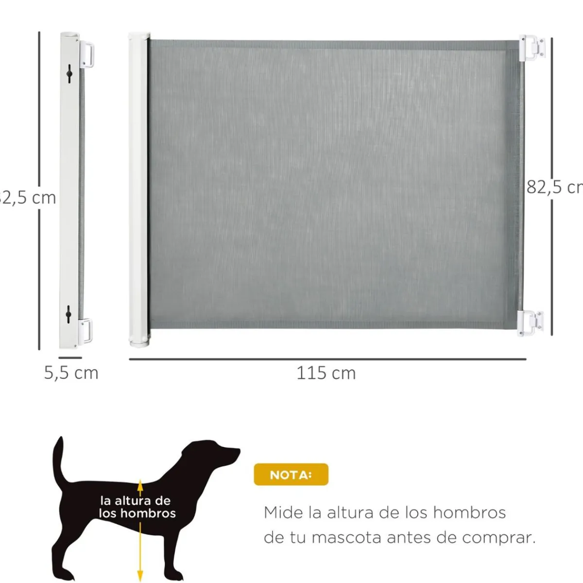 Homcom – Barrera seguridad para interiores. Esta barrera de seguridad retráctil es la solución ideal si quieres mantener algunos espacios de tu casa inaccesible para bebés o mascotas. Estancias como la cocina pueden ser peligrosas cuando se está cocinando. Te permitirá continuar con la puerta abierta y seguir viendo a tu mascota, pero ésta no podrá entrar. Lo mismo para escaleras o para delimitar estancias en las que no pueden entrar las mascotas.