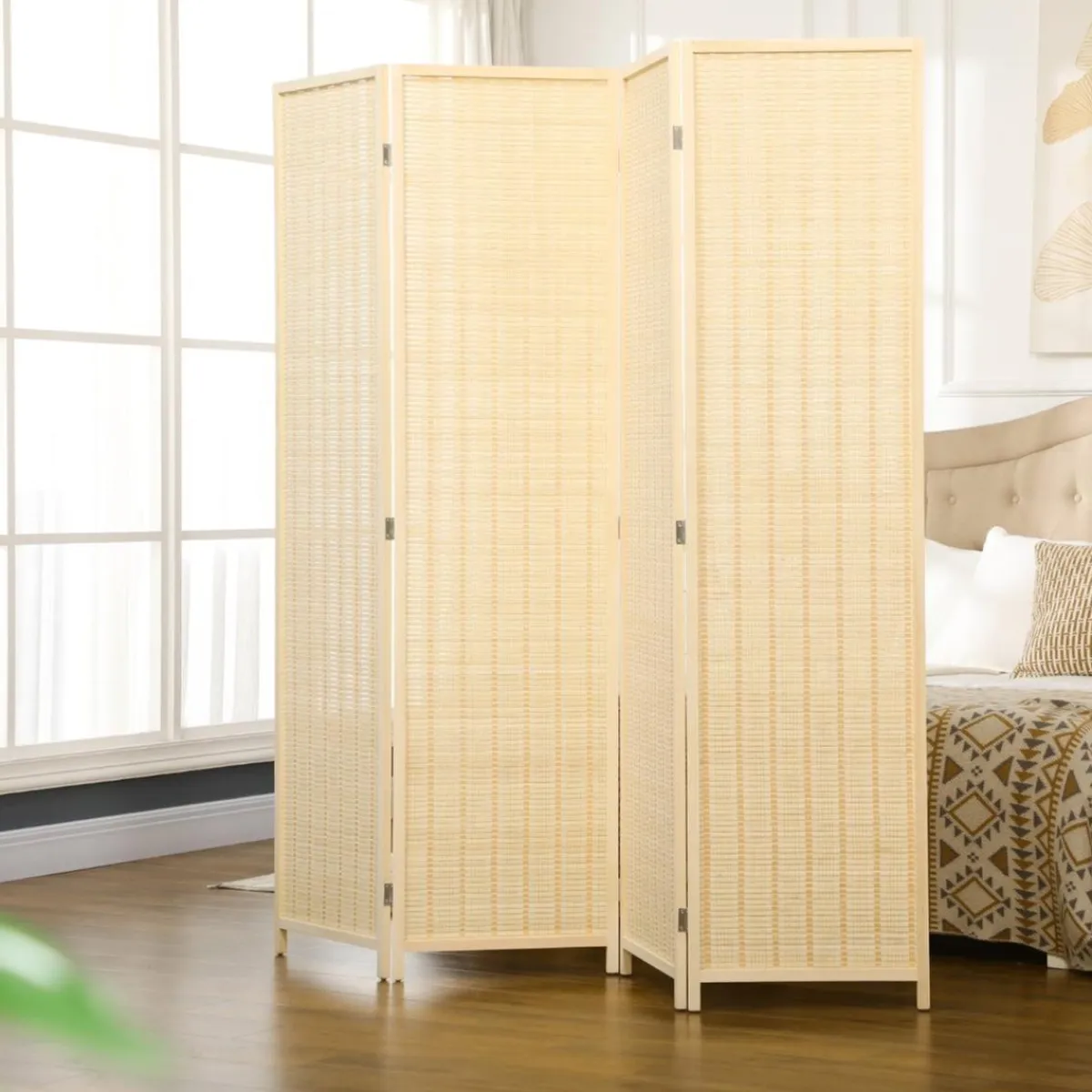 Homcom – Biombo de bambú 4 paneles, un separador de habitaciones de 4 paneles que crea un espacio privado e independiente en cualquier espacio de tu hogar. Ideal para dormitorios, salas de estar, oficinas, etc.