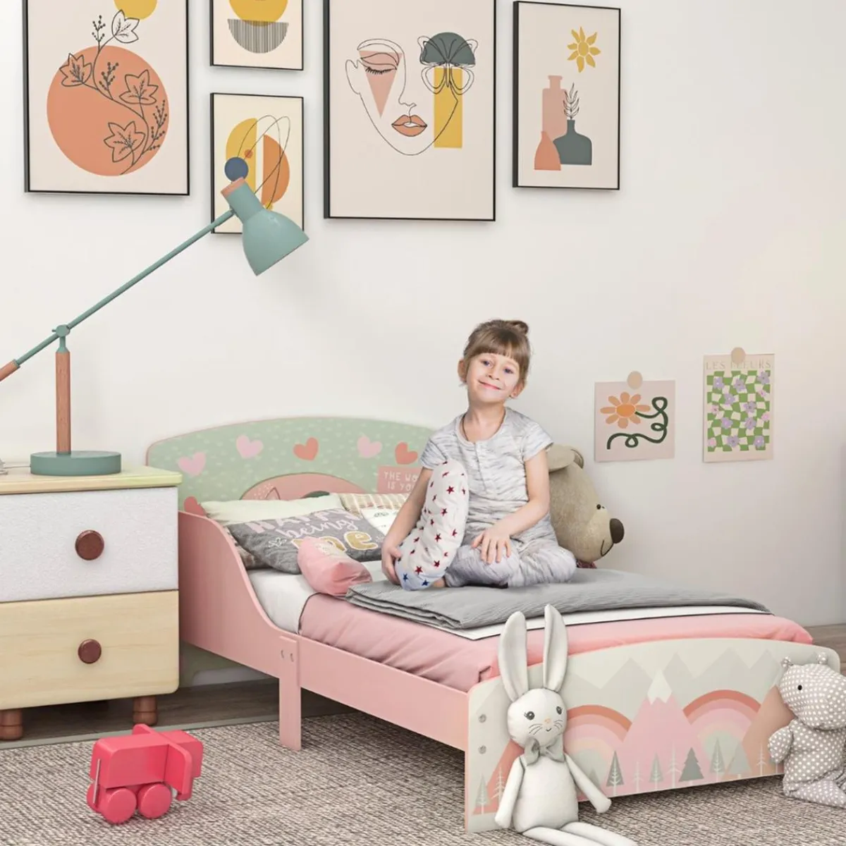 Homcom – Cama infantil Montañas Rosa, una cama infantil tiene un diseño bajo que permite que los pequeños puedan subir fácilmente.