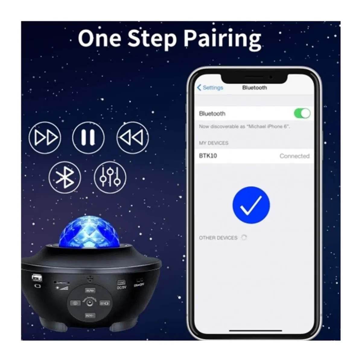 Proyector de estrellas con altavoz y bluetooth, un proyector ideal para disfrutar de las estrellas donde y cuando quieras, mientras escuchas tu música favorita.