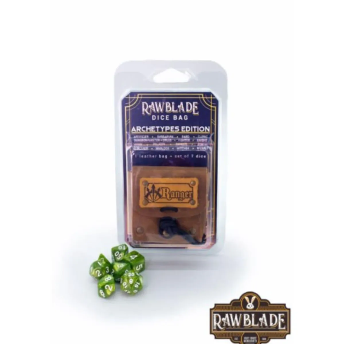 Nadie sabe más de dados con clase que Rawblade. Estos dados verde brillante son el modelo para guardabosques/explorador.