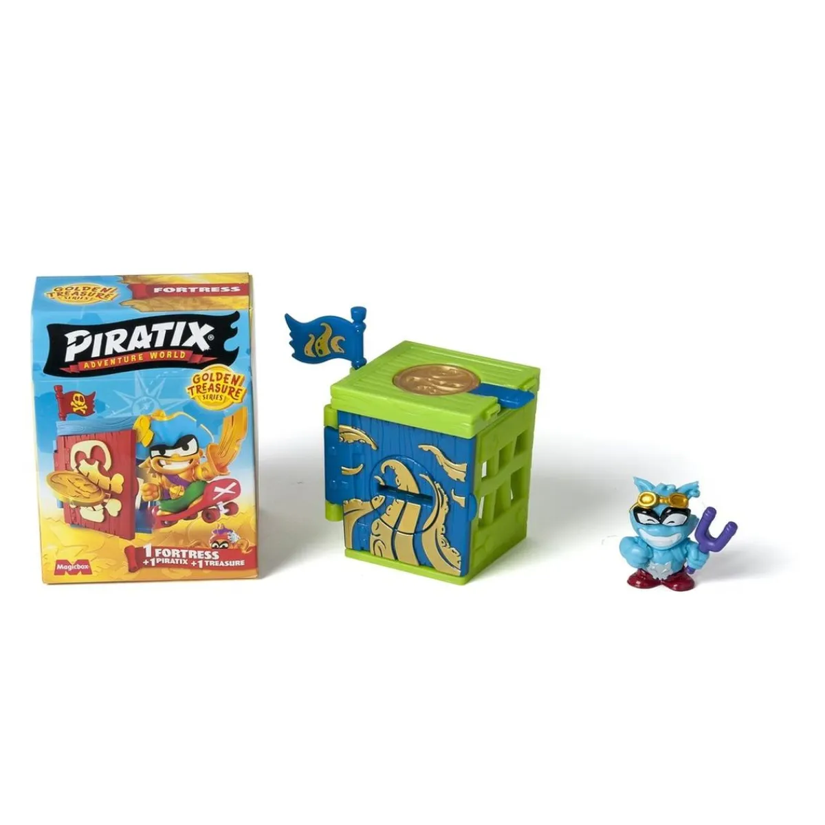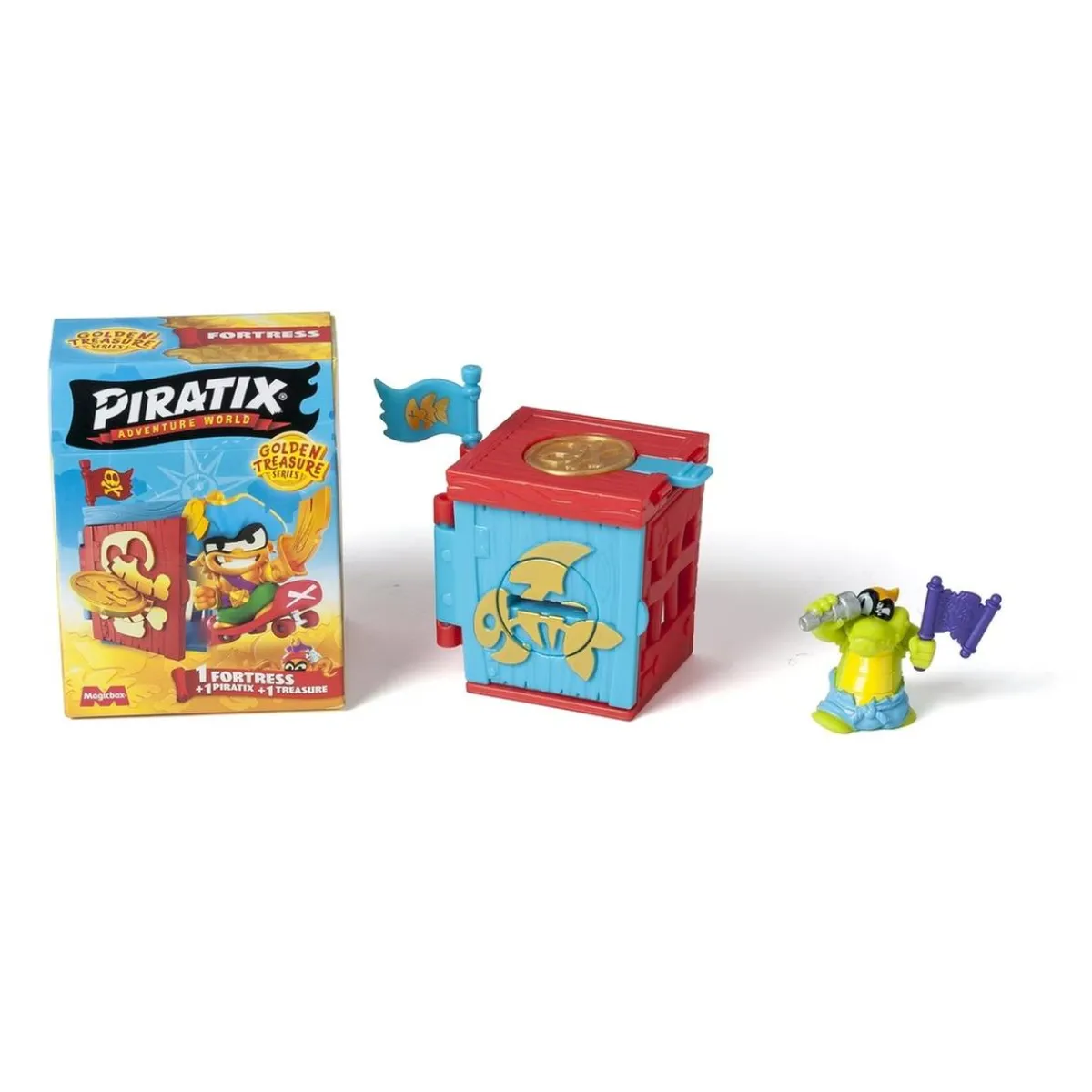 Piratix – Sobre Fortaleza sorpresa serie Golden Treasure. Diario de abordo: los Piratix han encontrado varios escondites esparcidos por Shark Island. En esos fortines se guardan grandes secretos y tesoros fabulosos…