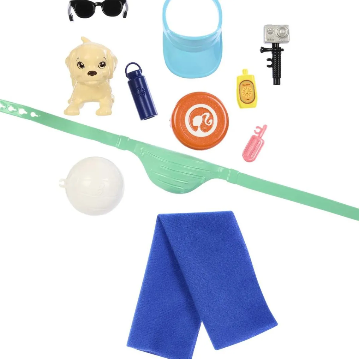 Pero eso no es todo, Ken viene con muchos accesorios de playa que harán las historias aún más emocionantes: una riñonera, una toalla, un frisbi, unas gafas de sol, una visera, una botella de agua, una crema solar, una cámara deportiva, un reloj, una pelota y un helado. ¡Todo lo que se necesita para vivir un día de playa perfecta!