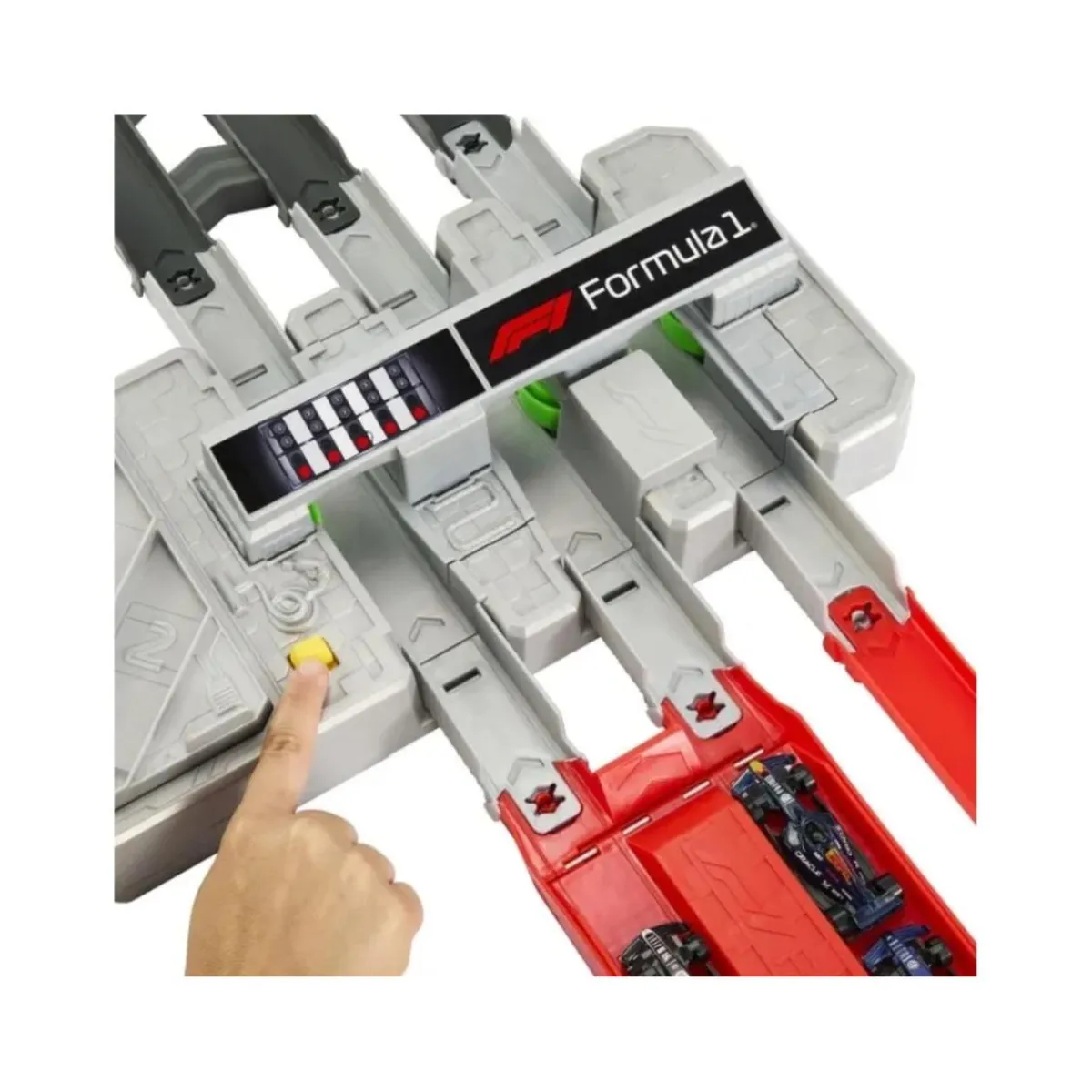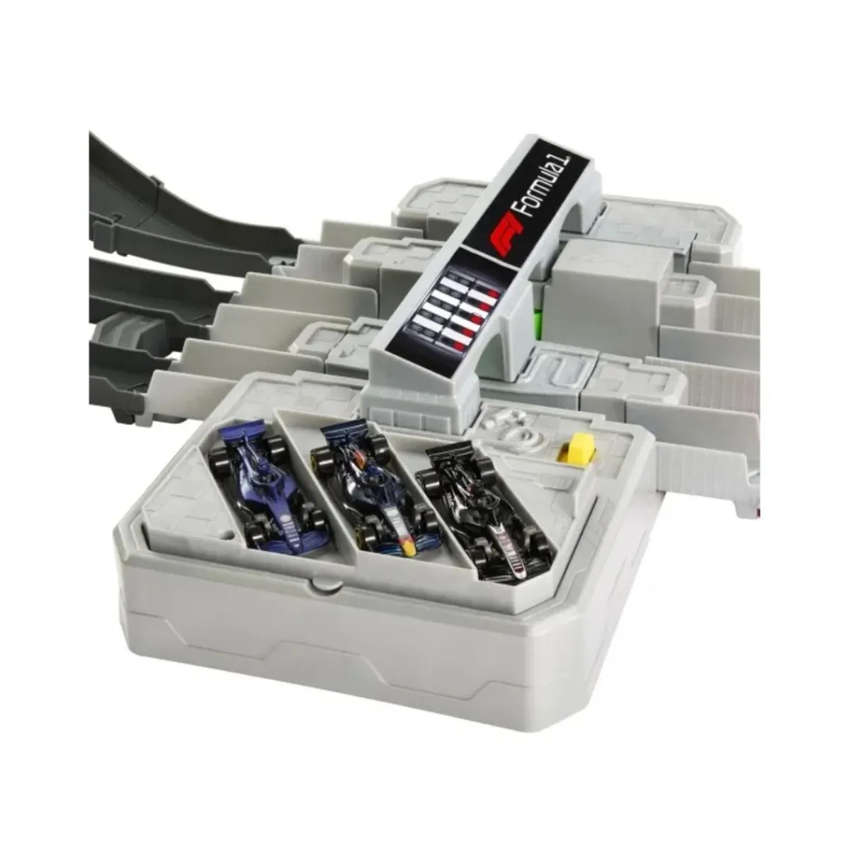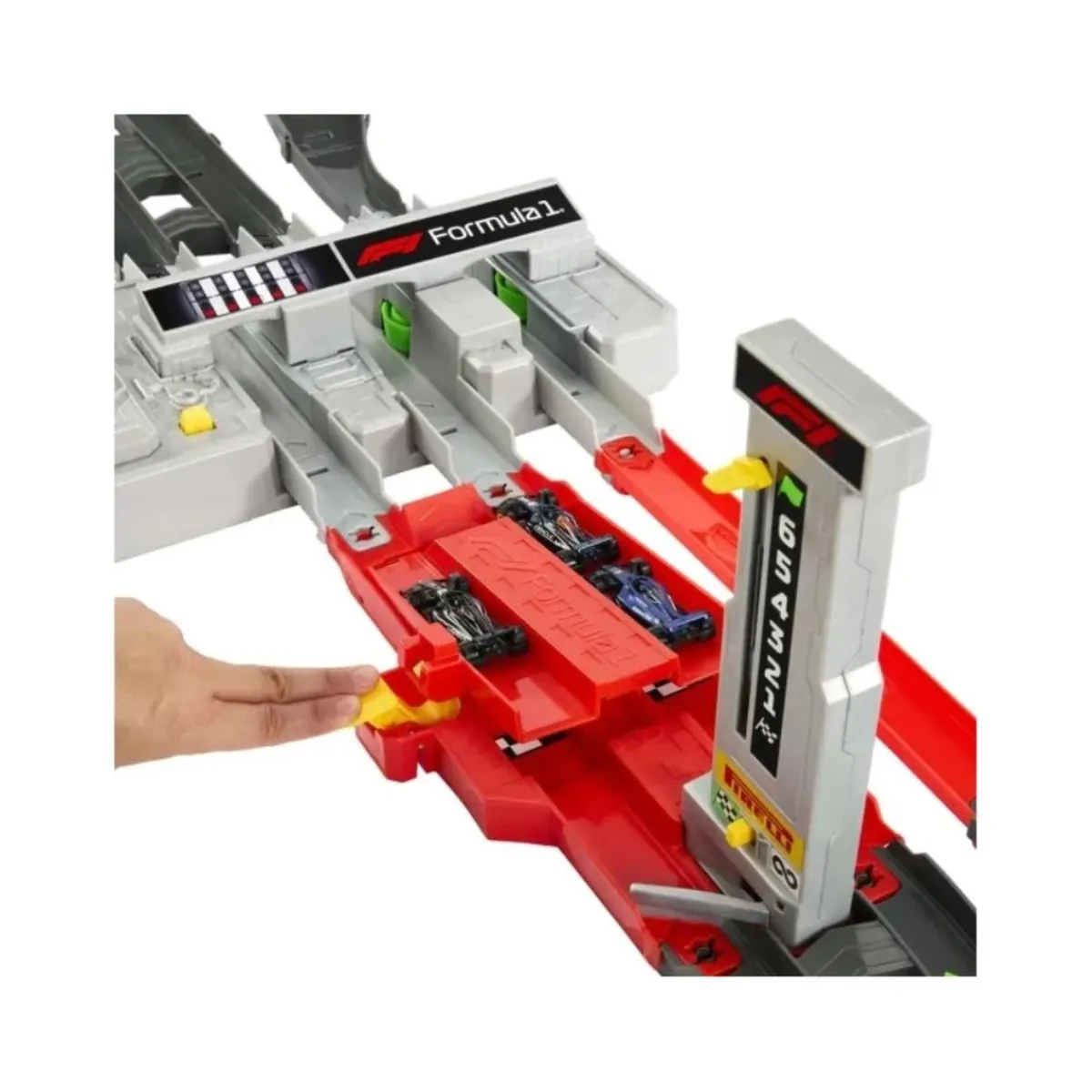 Hot Wheels Racing F1 Motorizada + 3 coches – Velocidad con empuje automático