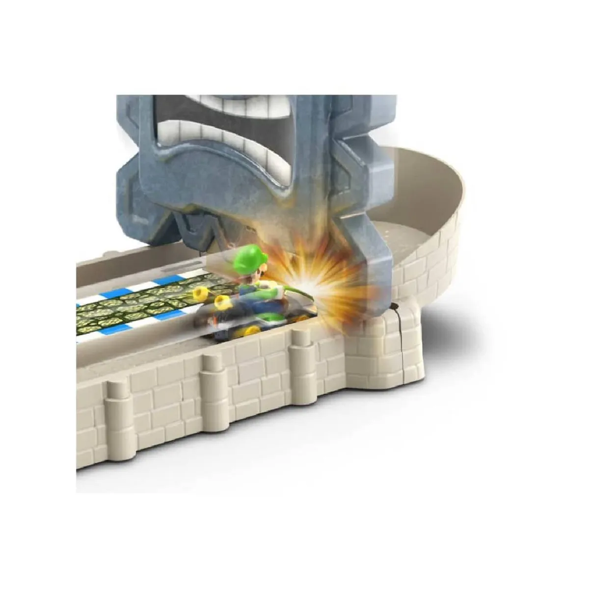 Lanza el kart metálico de Luigi como en el juego, pero esta vez en una pista de Hot Wheels! Mantenerse firme en la pista es la clave para ser el corredor más rápido de la carrera.