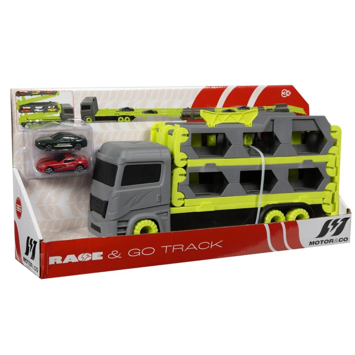 Motor & Co – Camión con pista plegable y 2 coches