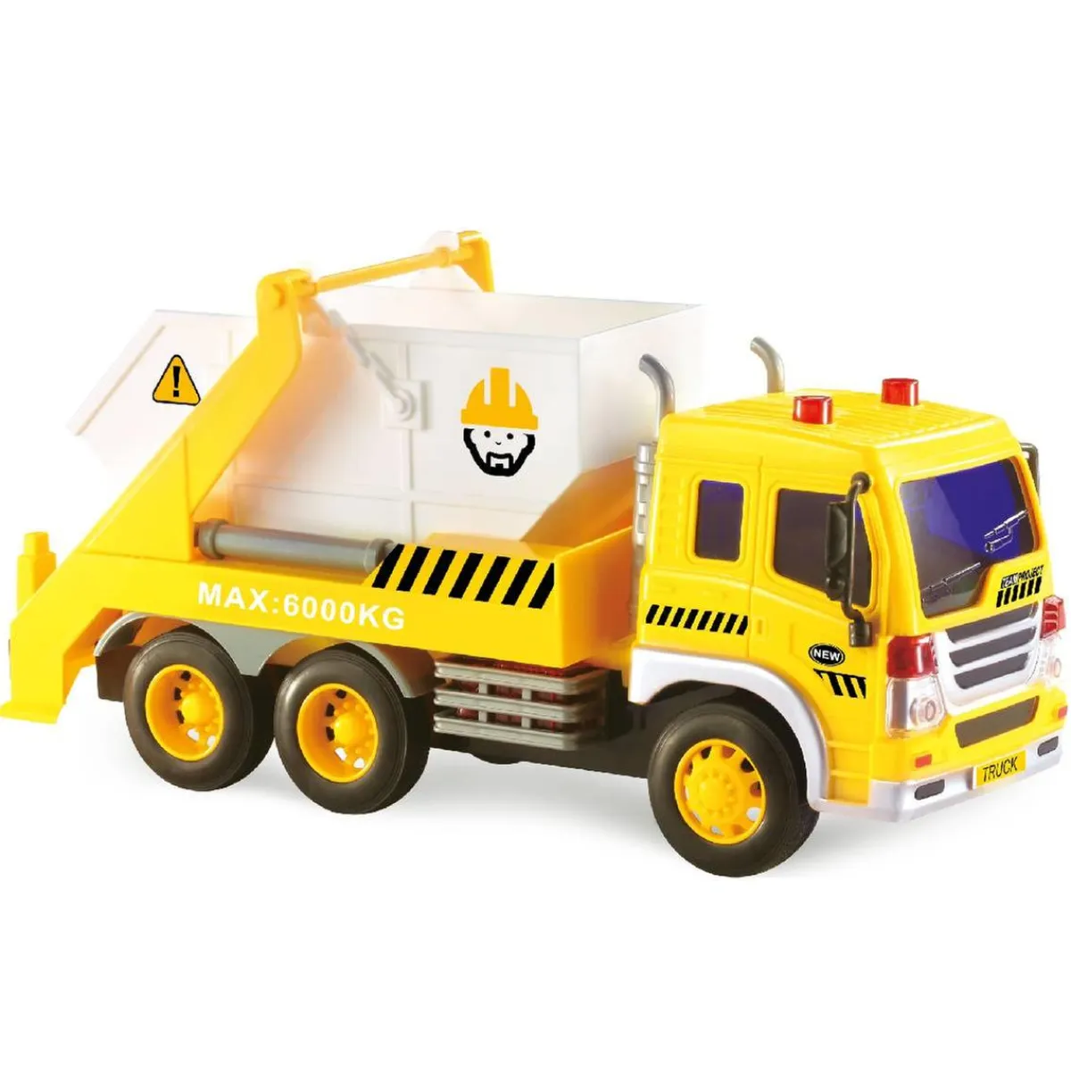 Vehículo de construcción a escala 1:16 con luces y sonidos y con movimiento por fricción que hace que se mueva suavemente.