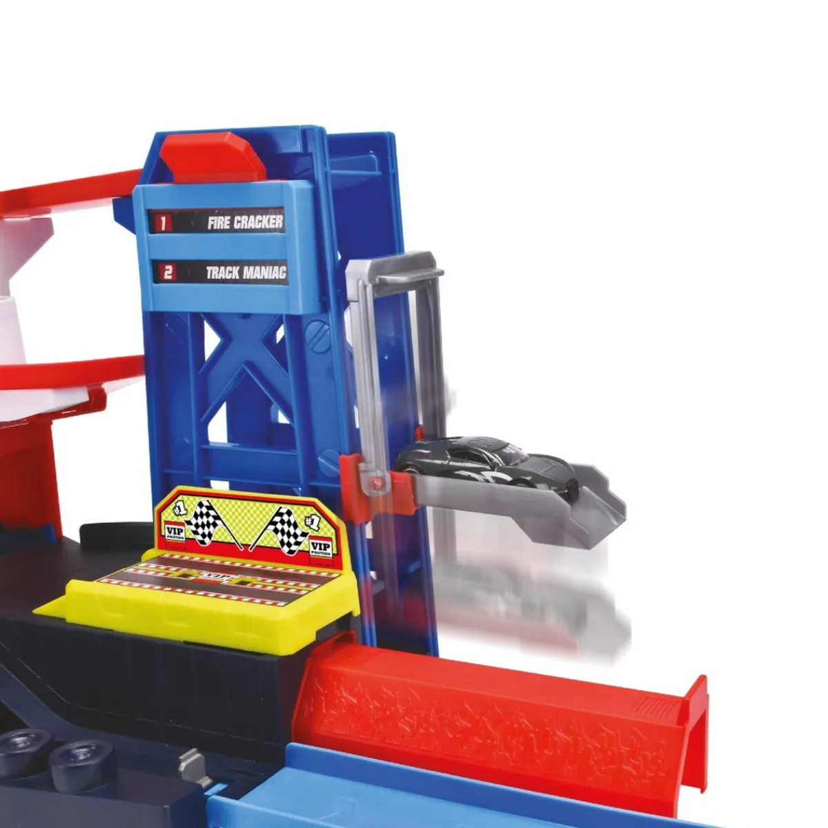 Tendrás el control de tu equipo de Fórmula 1 con este garaje de coches de carreras de Motor & Co. ¡Corre con tu coche por la pista de acceso para detenerlo en la parada para repostar!
