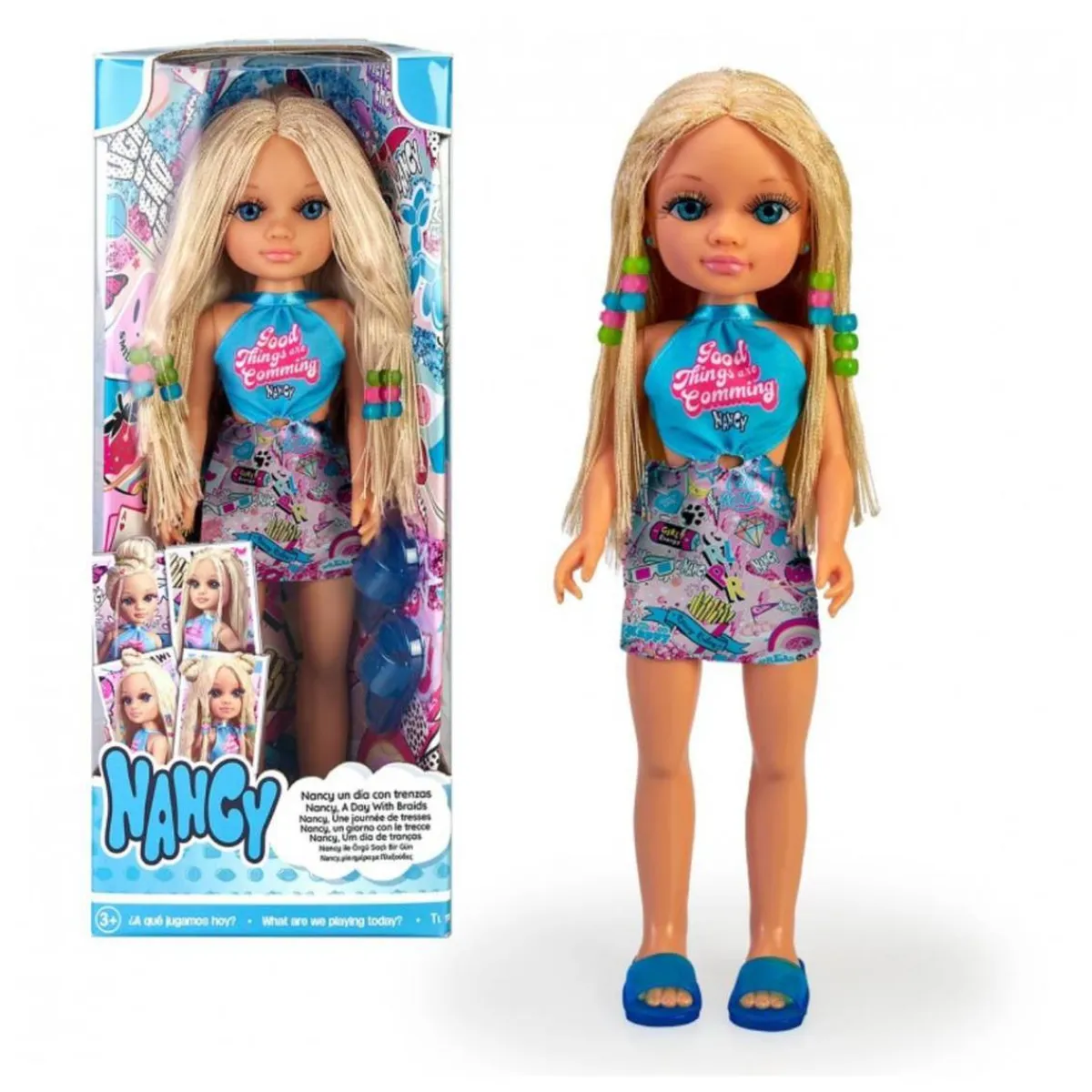Nancy – Un día de trenzas, pelo rubio, muñeca Nancy con trenzas y pelo rubio.