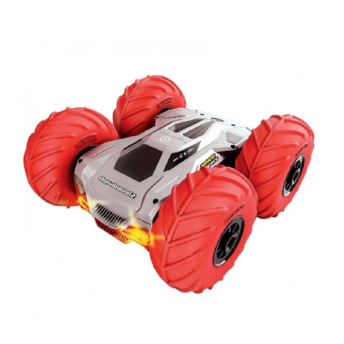 Haz volteretas 360º, nada te podrá detener con este divertidísimo coche de radiocontrol reversible, funciona sobre tierra, agua, nieve….. ¡Ahora con luces!