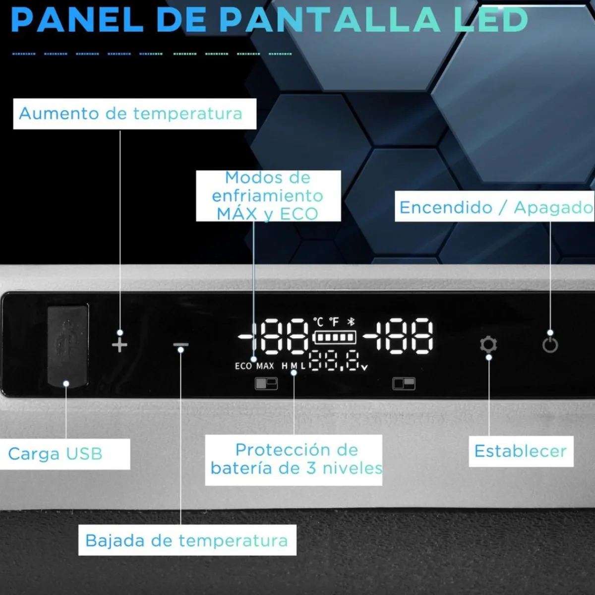 - Para evitar que la batería del coche se agote, el mini frigorífico se apaga cuando la tensión continua está por debajo de un nivel seguro.