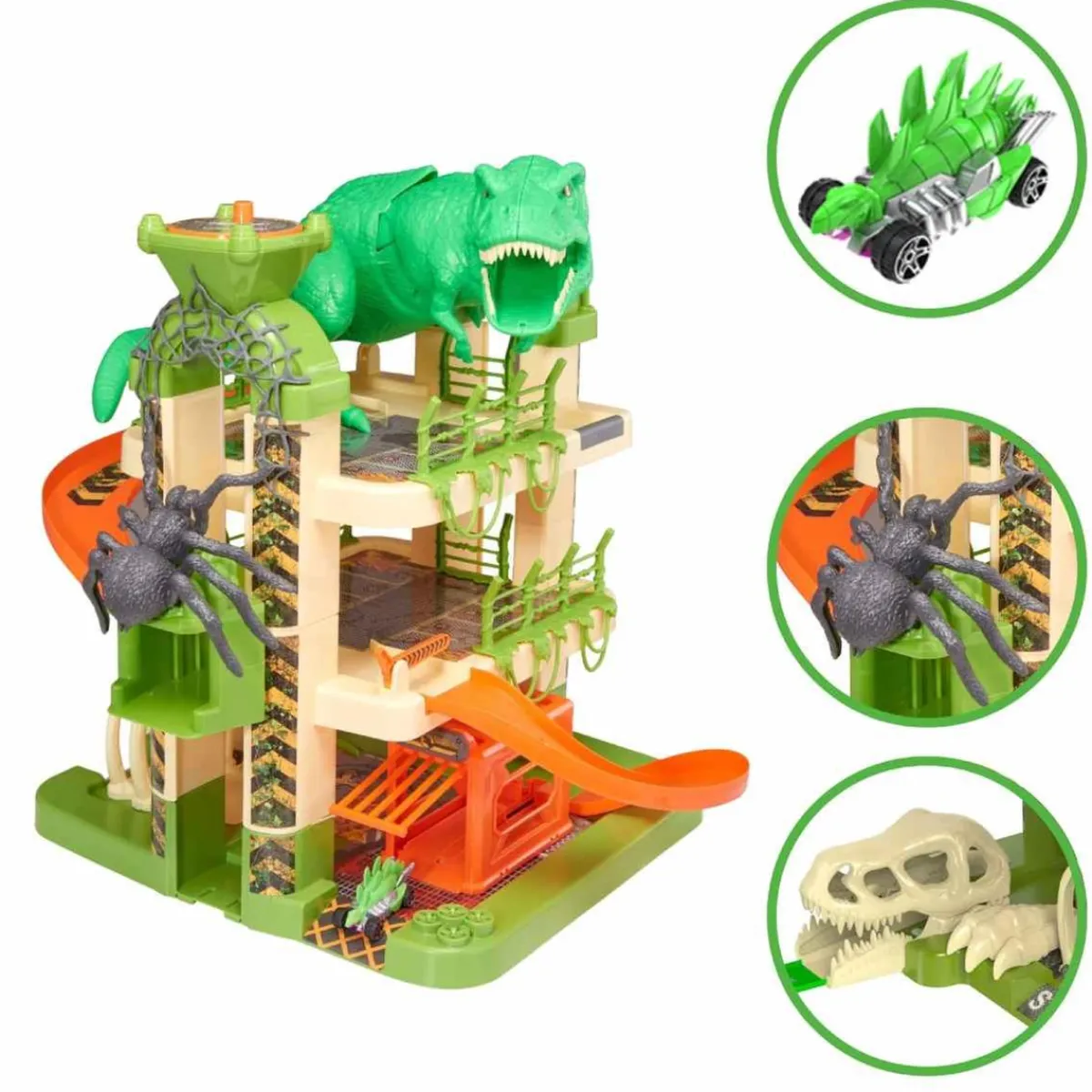 - Sumérgete en la boca del dinosaurio para descender a toda velocidad por los 3 pisos.