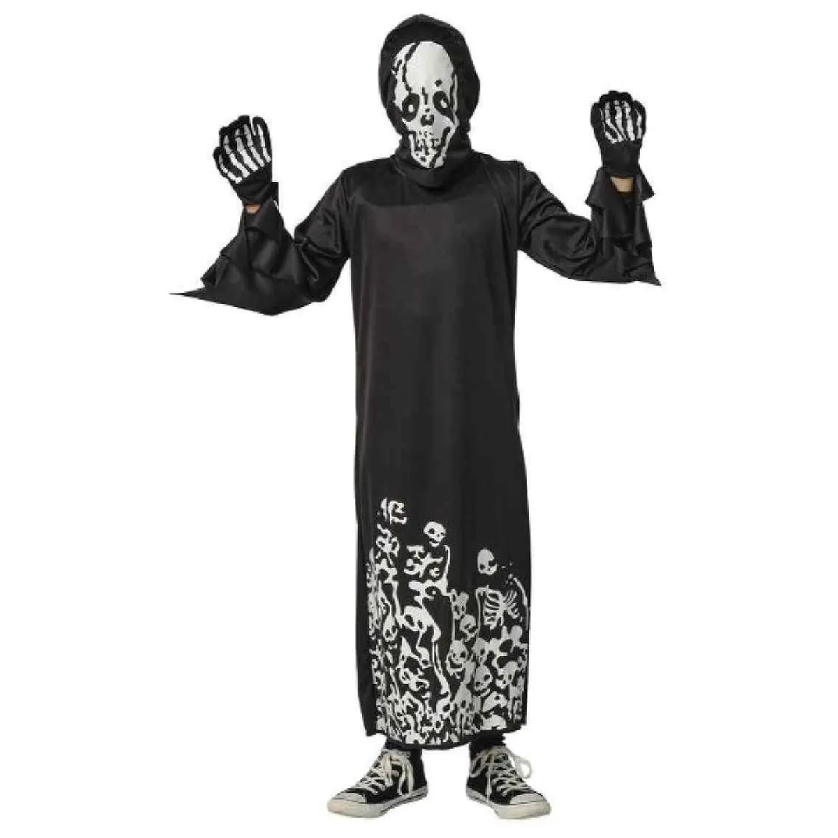 Disfraz infantil – Esqueleto siniestro que brilla en la oscuridad talla L, un disfraz de esqueleto para niños de 8 a 10 años (122-128 cm).