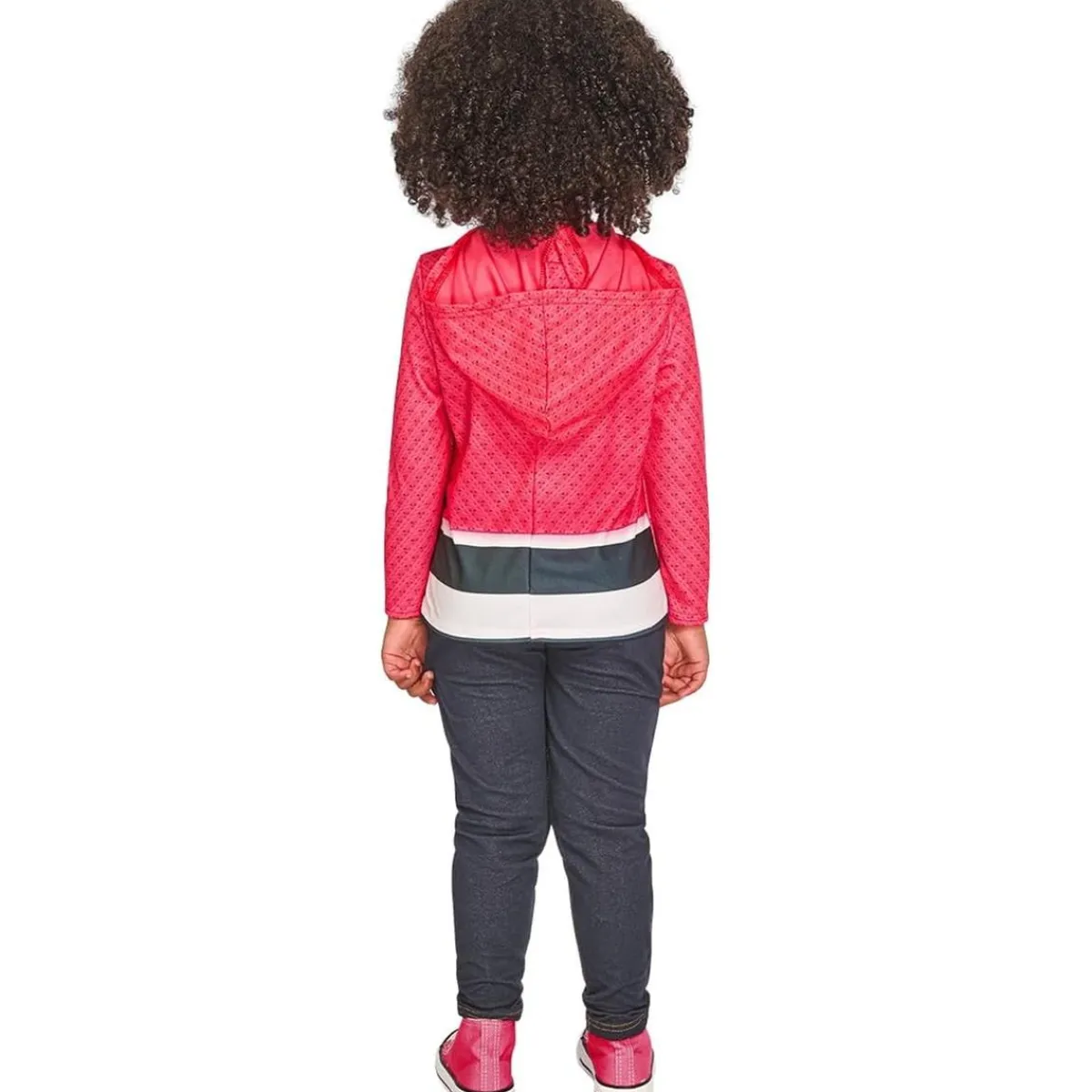 Este set especial está inspirado en Gabby, una niña de 12 años que, con pasión por los gatos y el juego, se embarca en aventuras extraordinarias. Al ponerte esta camiseta de rayas blancas y detalles de gatos con efecto chaqueta rosa con capucha , la imaginación cobra vida y cada juego se convierte en una historia única que contar.