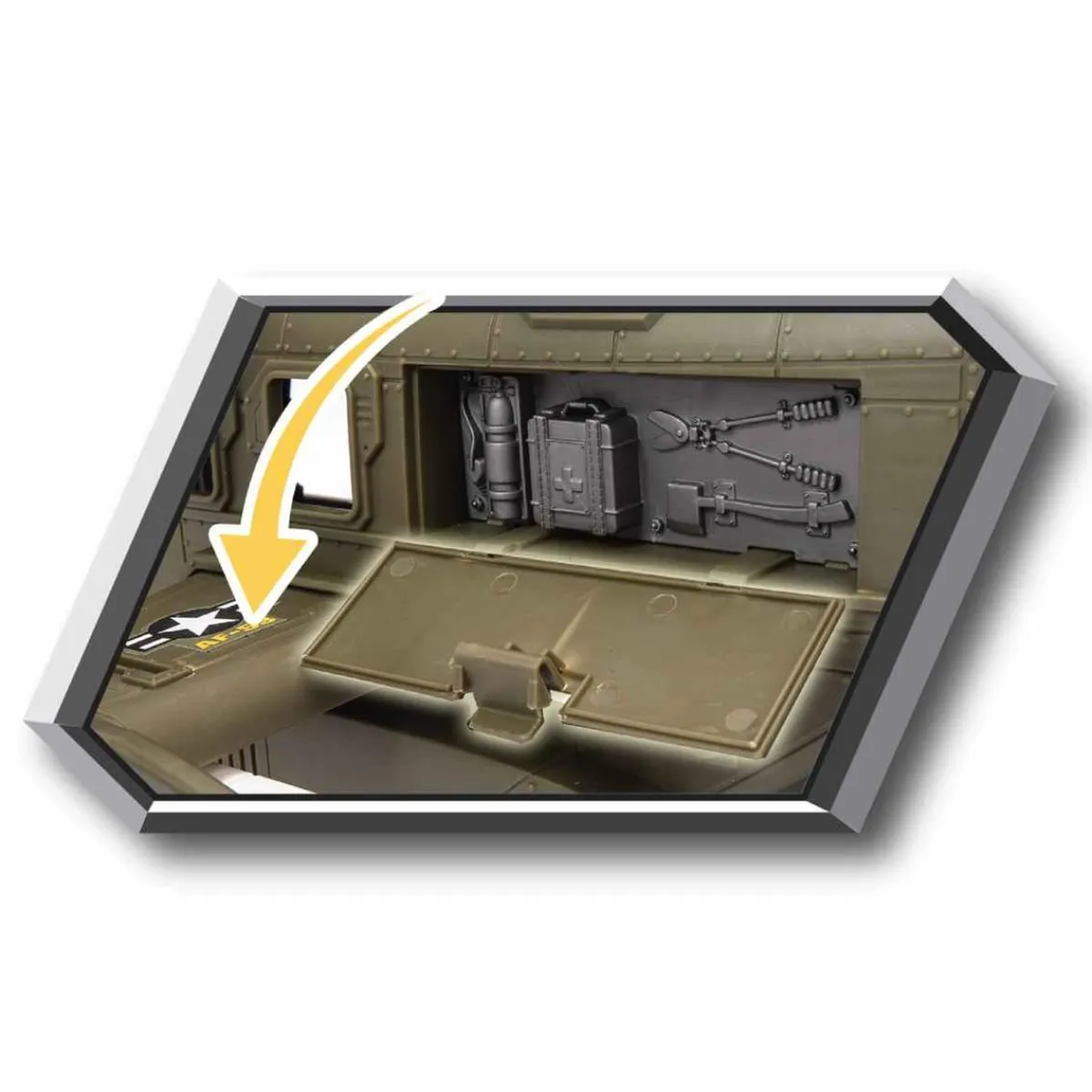 Este helicóptero de combate de 53 cm de largo aproximadamente tiene efectos de luz y sonido para mayor realismo.
