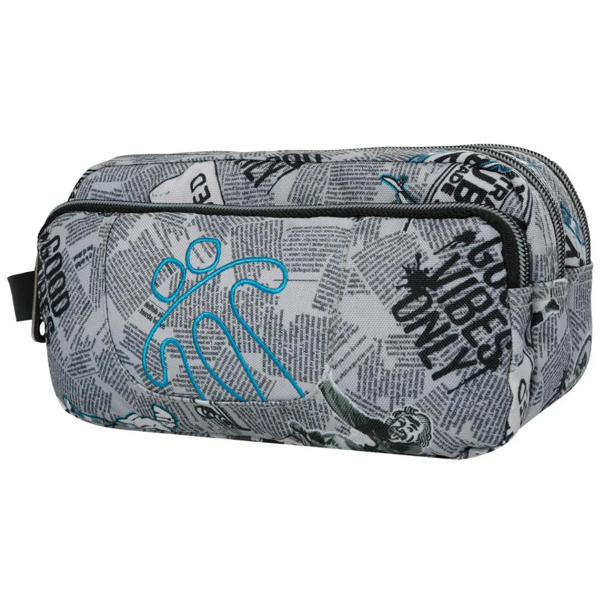 Nuestro estuche escolar triple con sus espaciosos compartimentos está pensado para materias y actividades en las que necesiten llevar gran cantidad de accesorios. Estampado con recortes de periódico.