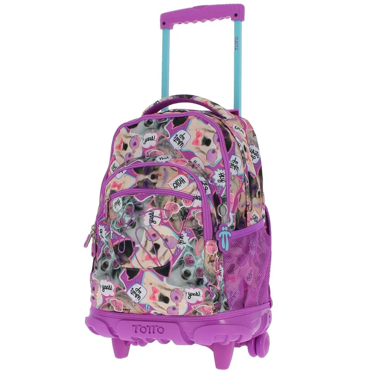 Totto – Mochila escolar con ruedas Renglones – Perritos, una mochila escolar pensada para cuidar la espalda del niño llevando el peso cómodamente con el carro.