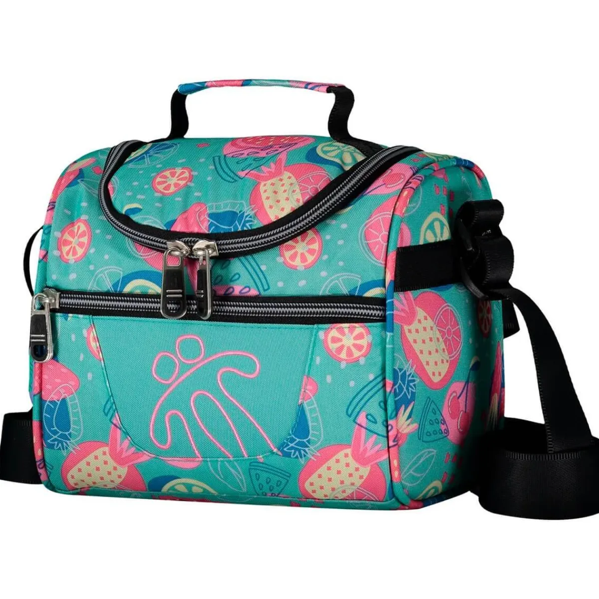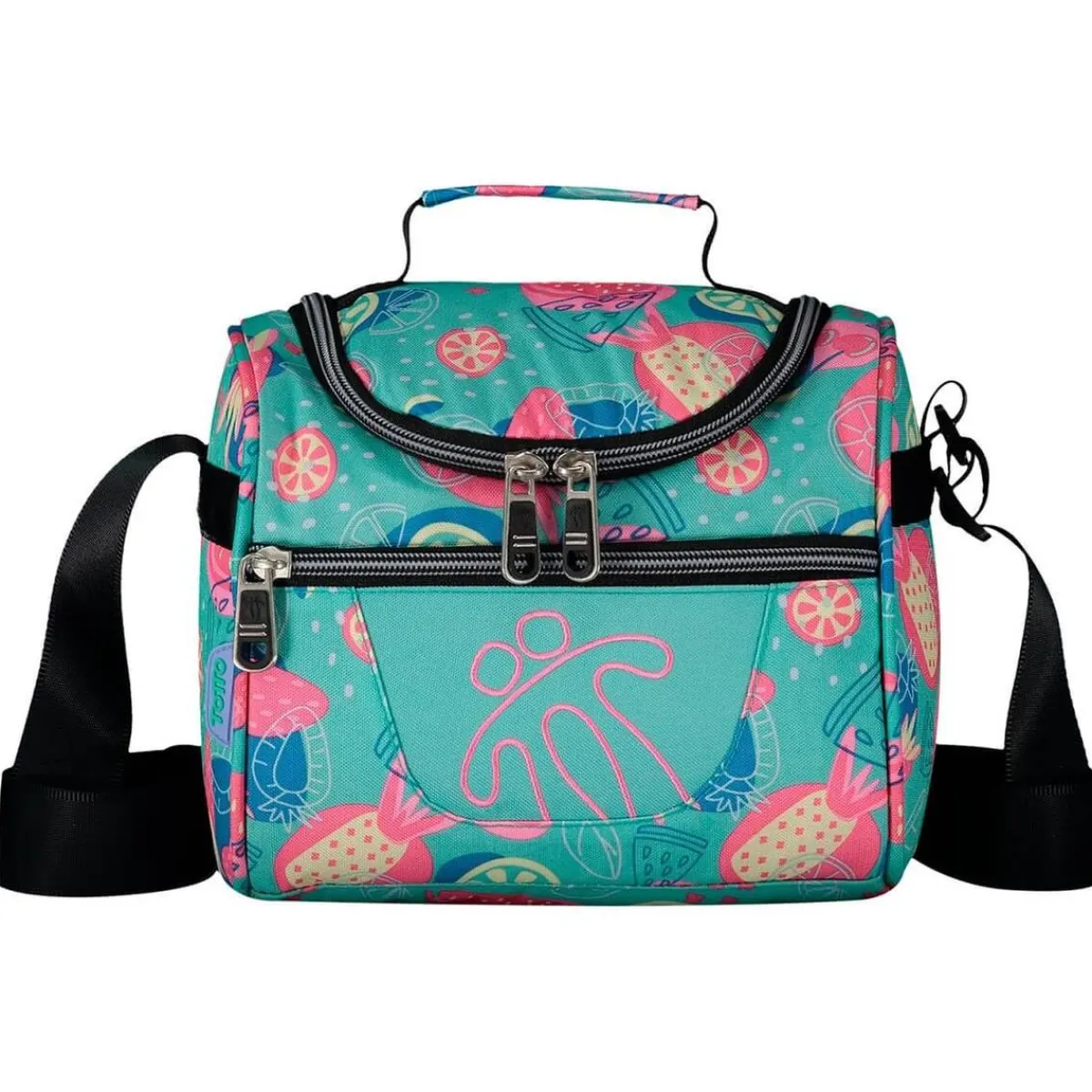 Tiene un compartimento interior con un material especial para llevar los tuppers, la meriendas, servilletas, cubiertos y más.