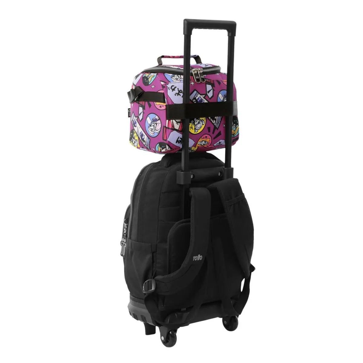 El portameriendas escolar Resaltador Kitsune es el compañero ideal para llevar tus almuerzos al colegio con comodidad y estilo. Su diseño moderno con detalles inspirados en el universo Kitsune aporta un aire divertido y único. Gracias a su apertura de 180°, podrás acceder fácilmente a su interior térmico, que mantiene la temperatura de los alimentos hasta cinco horas. Incluye bolsillos de malla con cremallera para organizar cubiertos, servilletas o pequeños recipientes. Fabricado en material RPET procedente de botellas recicladas, es resistente, fácil de limpiar y repelente a líquidos. Además, cuenta con correas ajustables y un pasador para integrarse en sistemas de ruedas. Perfecto para disfrutar de comidas frescas y bien organizadas en cualquier momento.