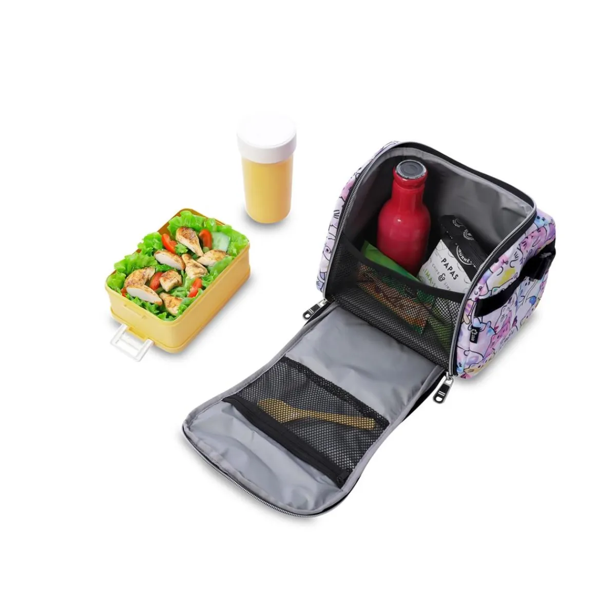 - Capacidad ideal para transportar bocadillos y frutas.