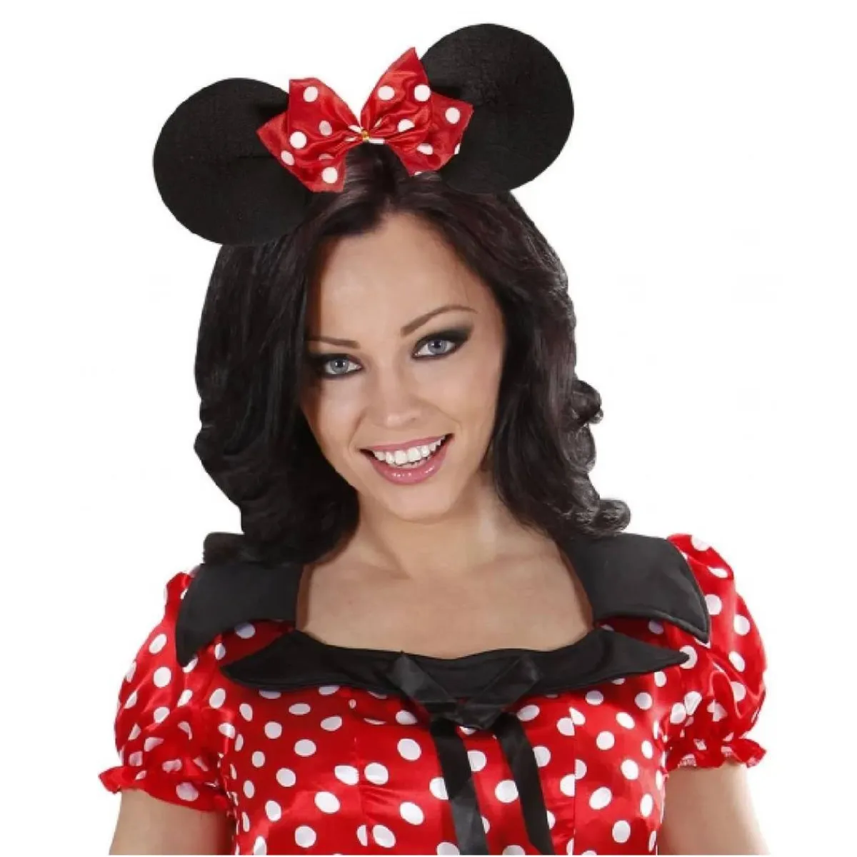 Diadema adulto orejas de ratón con lazo, un complemento para tu disfraz.