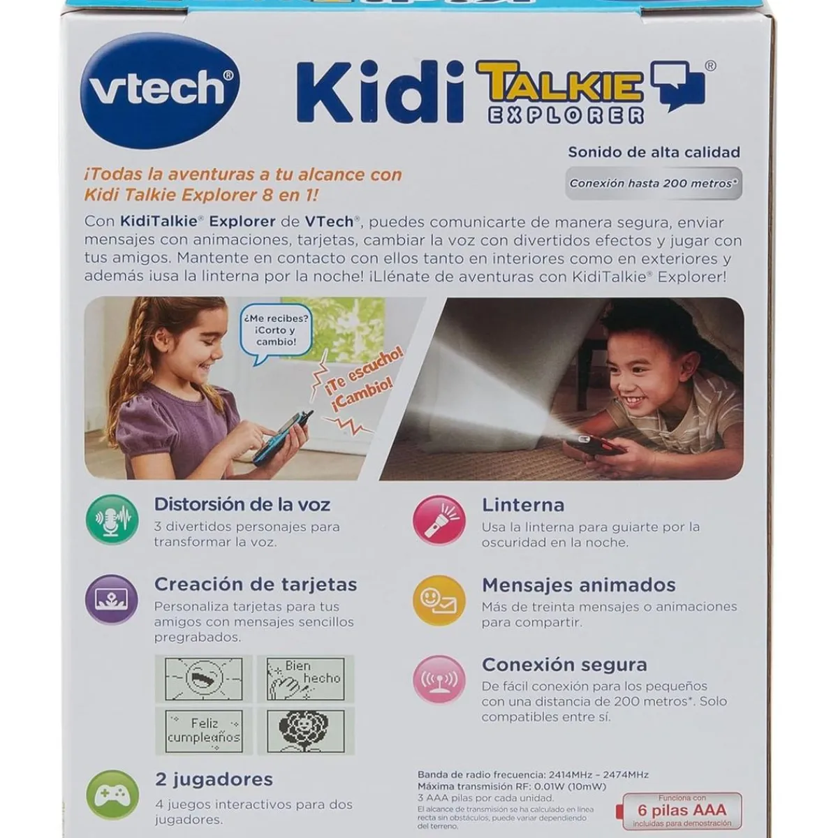 Para hacer la experiencia aún más divertida, el Kiditalkie Explorer ofrece una función de cambio de voz con efectos como agudo, robot y eco. Además, incluye cuatro juegos interactivos que harán las delicias de los más pequeños, ofreciendo horas de entretenimiento mientras desarrollan su creatividad y habilidades de comunicación.
