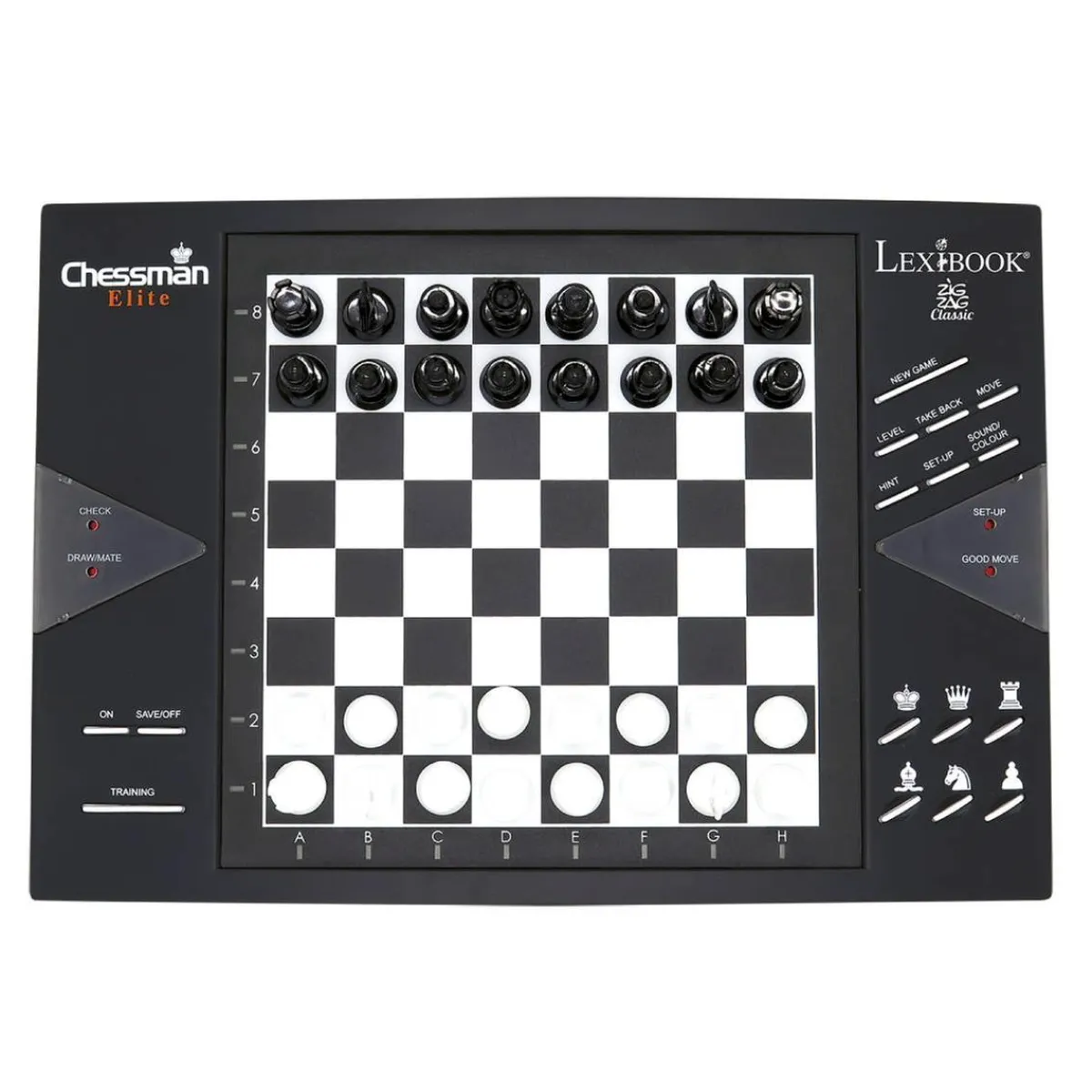 También cuenta con un modo de mejora que le indica al jugador si el tiro que acaba de realizar es óptimo o no y le permite volver a jugar. Con este juego de ajedrez electrónico, tú o tu hijo pueden jugar contra un oponente o en solitario.